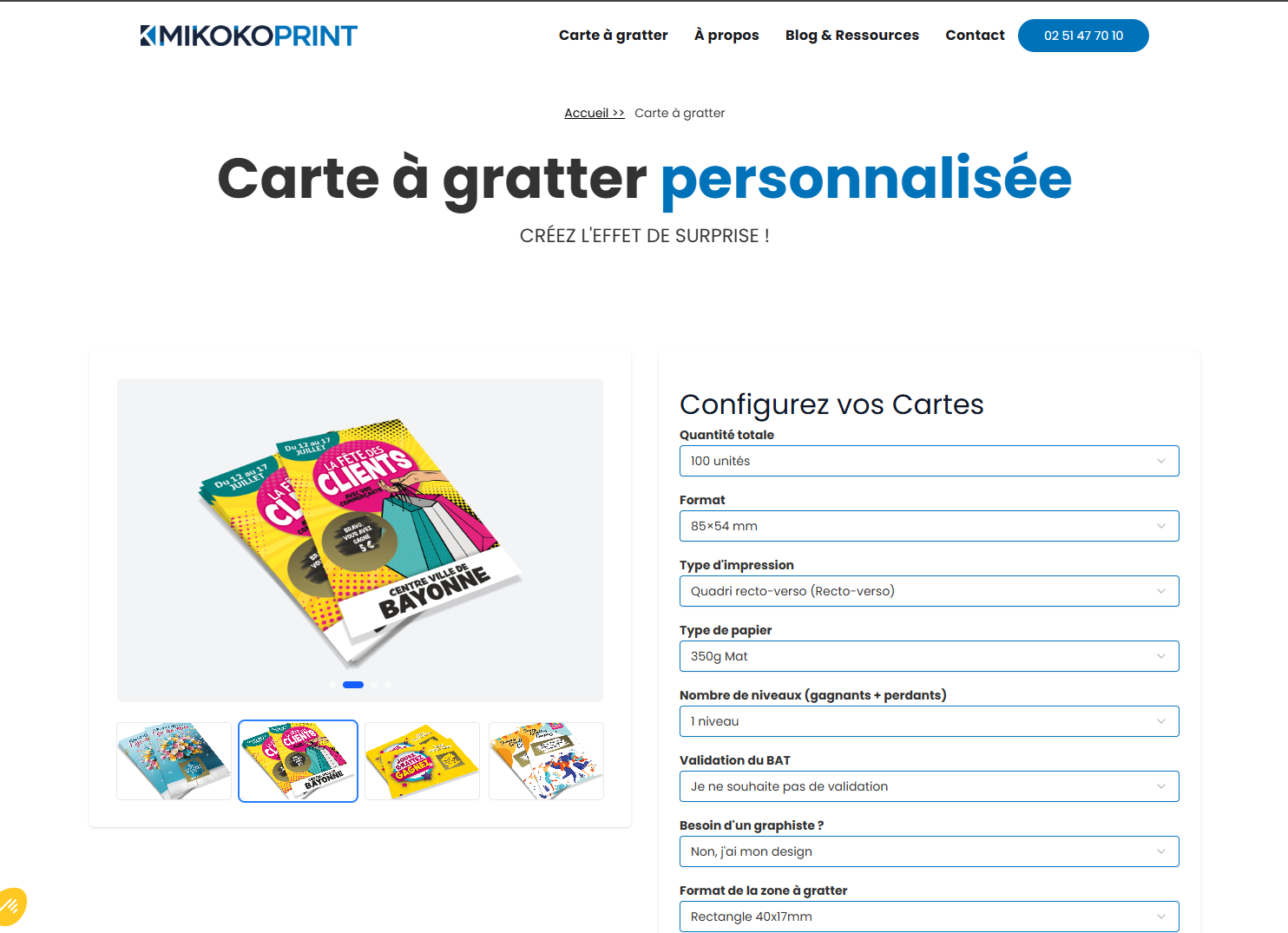Mikokoprint est une entreprise spécialisée dans la création de tickets à gratter 100 % personnalisables pour les professionnels : entreprises, collectivités, associations et organisateurs d'événements. Leur produit phare ? Un ticket à gratter à l'image de leur client, livré partout en France et en Europe, fabriqué sur des supports de qualité certifiés.
